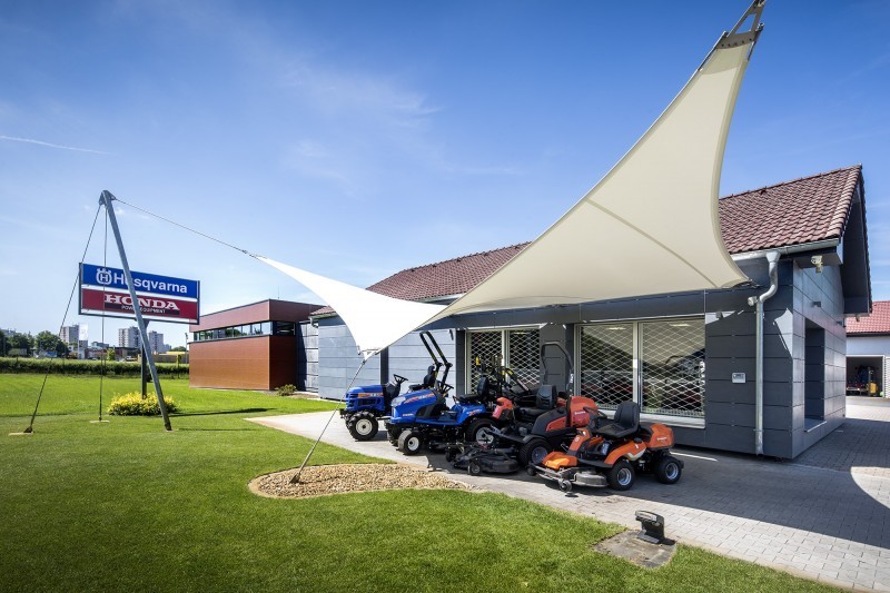Rekonstrukce a rozšíření provozovny s prodejnou a servisem zahradní techniky byla navržena a realizována ve dvou etapách. První etapa byla zaměřena na revitalizaci vzhledu již existující prodejní části, druhou etapou byla přístavba, která spolu s první etapou vytváří jednotný celek prodejních ploch. Architektonický koncept řešení je založen na zpřehlednění a optimalizaci funkčních vazeb a dále na vložení nových prvků a materiálů, které mají přispět k zatraktivnění prodejního objektu. Návrh rovněž sleduje vyřešení návazných venkovních prostor pro umístění prodávané techniky, nové umístění označení prodejny a reklamních tabulí a také nástup do areálu ve vztahu k odpadovému hospodářství. Nové prvky a materiály jsou voleny tak, aby podpořily charakter prodejního sortimentu a dodaly objektu jedinečnou identitu.